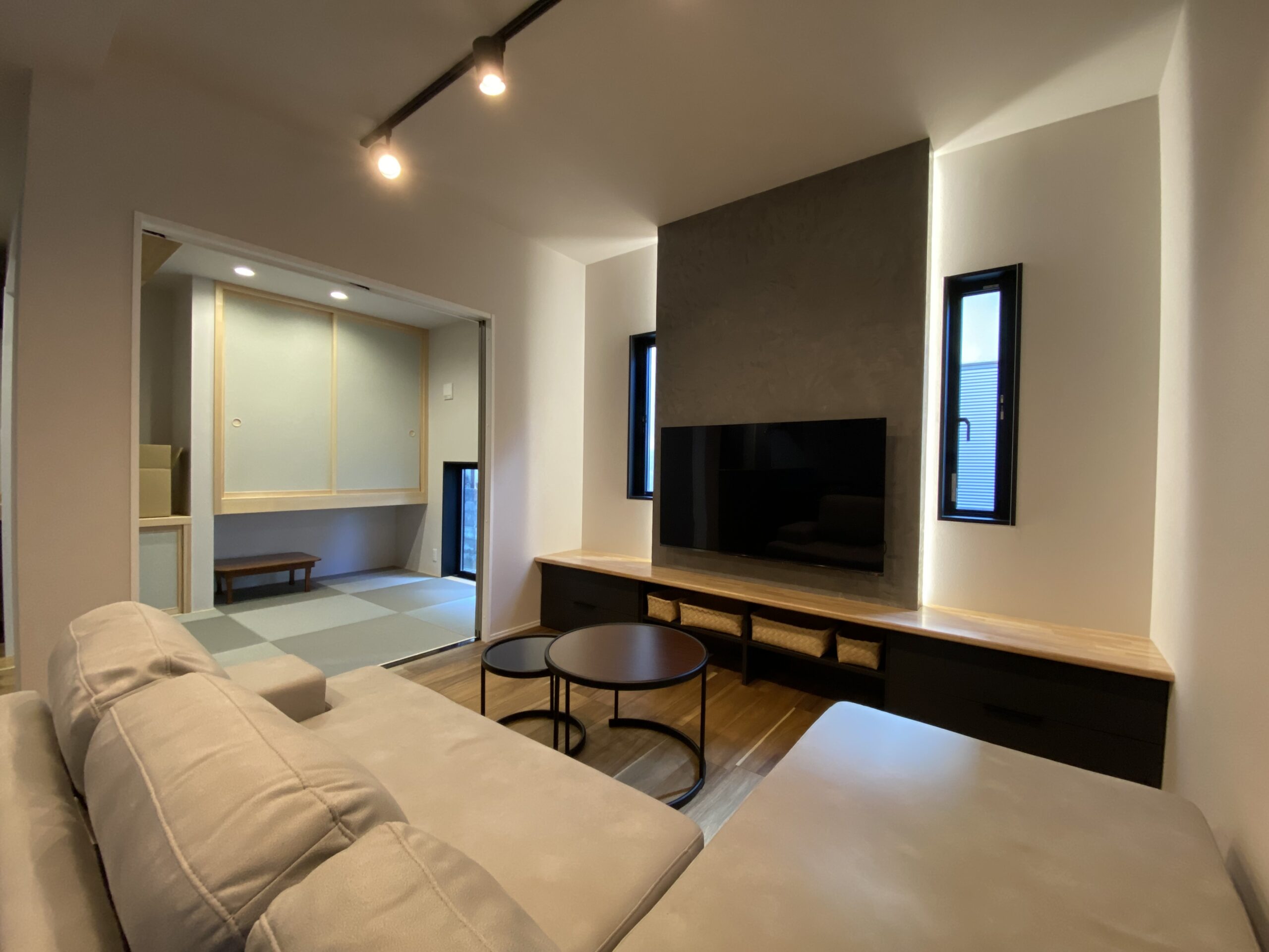 照明にもこだわったLDK、和室(22貼)はシンプルモダンな