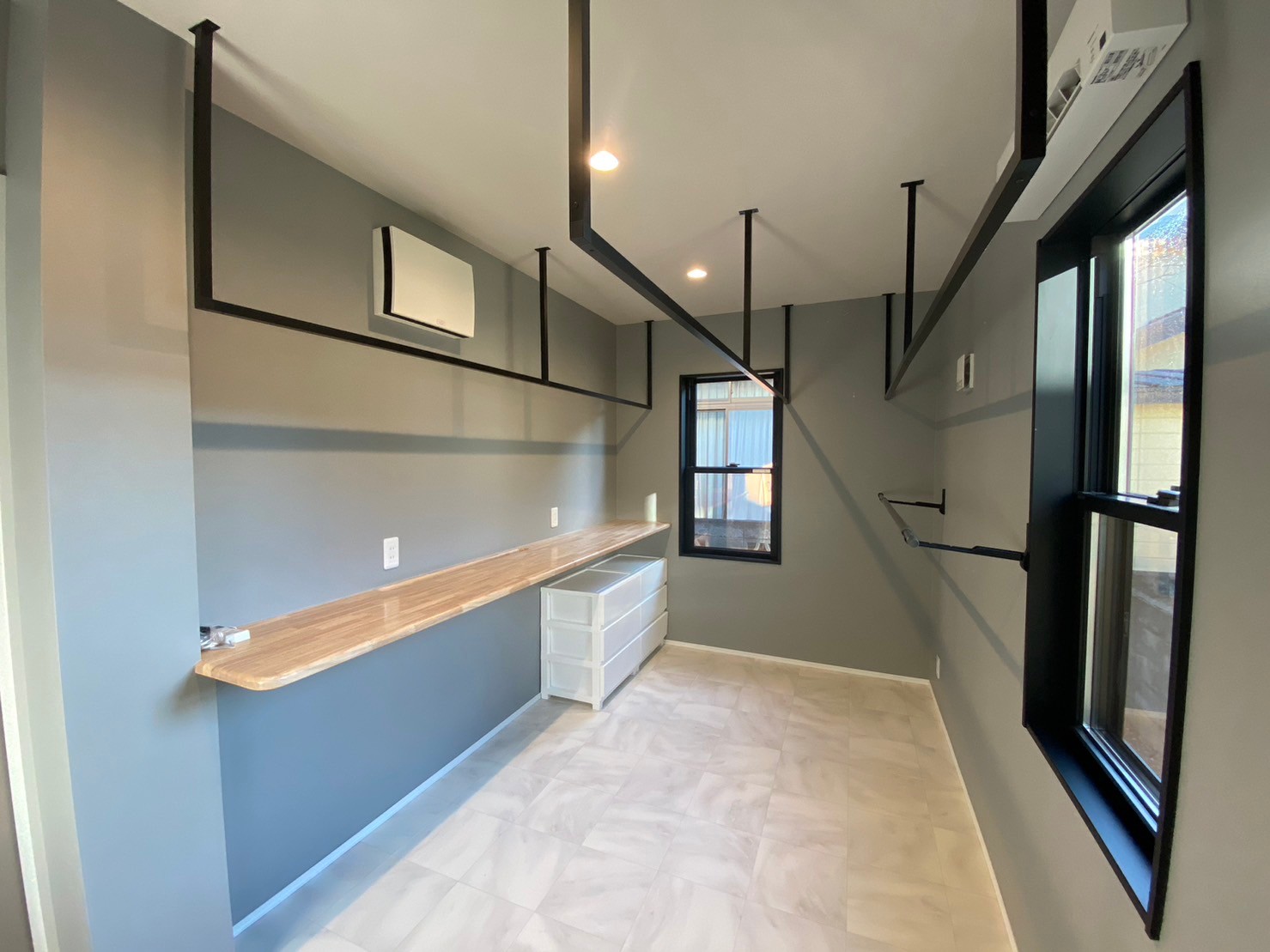 ゆとりある家事室には物干しスペースを十分に確保してあるので