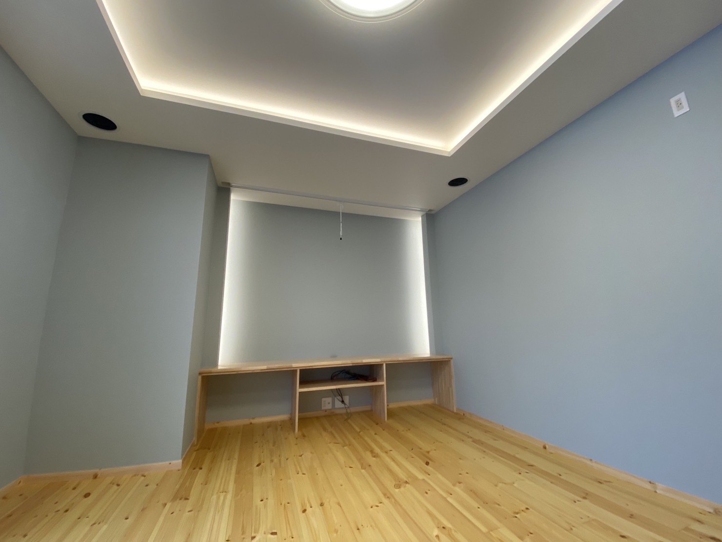 天井、ドアも木目調で仕上げ、安らげる空間に